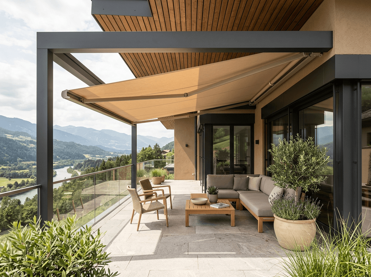 Es especialmente recomendable cuando el toldo está completamente expuesto a la intemperie, cuando buscas una solución duradera a largo plazo o cuando quieres un acabado más cuidado y minimalista.